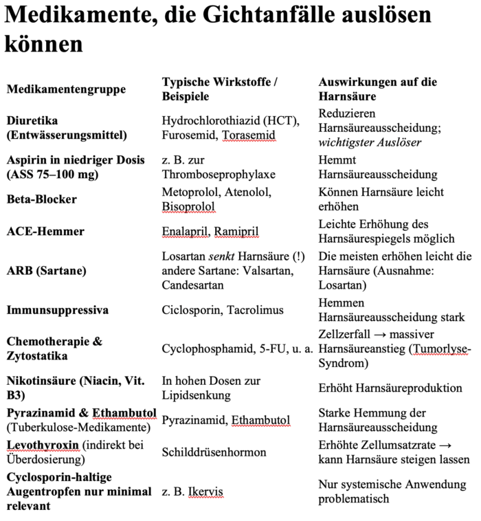 Einige Medikamente können einen Gichtanfall begünstigen: